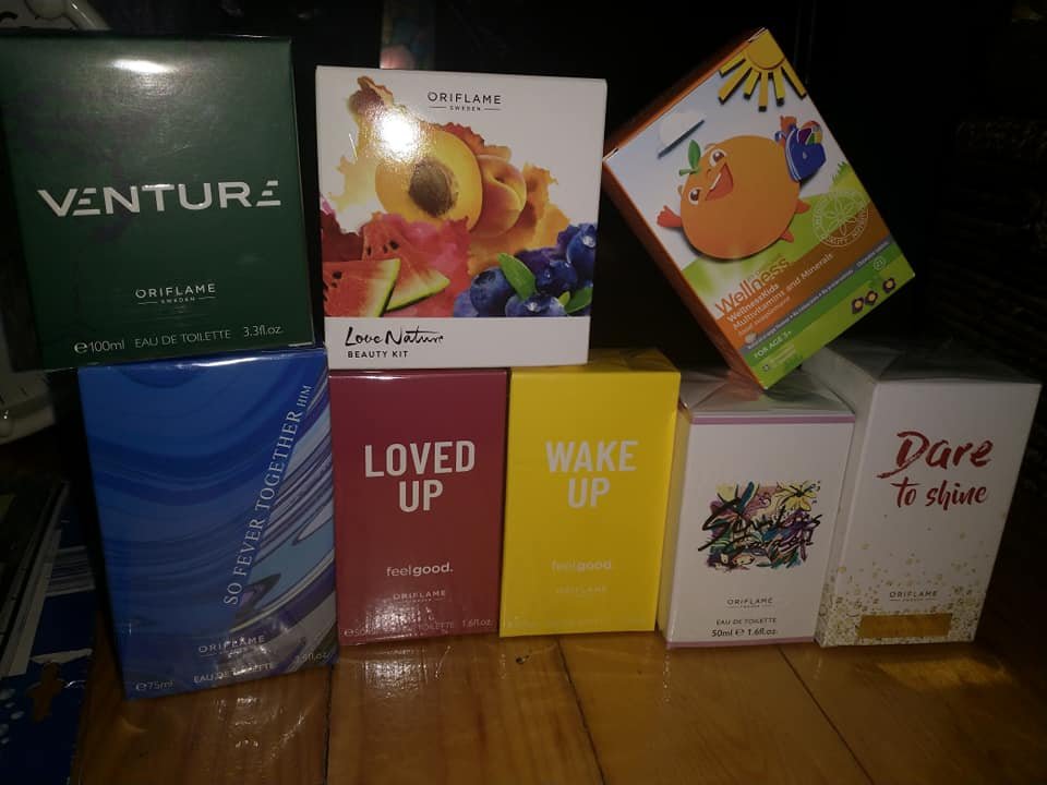 Jelenleg női, valamint férfi parfümök és dezodorok, testápoló, kézkrémek, napozás utáni krém, arcápolók, illetve gyerek multivitamin és sampon-balzsam kombó van a tarsolyomban.